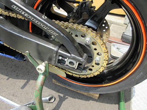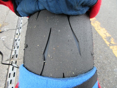 サーキット走行専用のCBR600RRですが、ST600と言うクラスのカテゴリーのレースで走っていたバイクを中古で購入したものです。 これまでサーキット走行の時のタイヤは、PIRELLIのDIABLO SUPERCORSA V4(Version4)を使っていましたが、ST600の公認タイヤのブリヂストンのR11を履いてみることにしました。 DIABLO SUPERCORSAとブリヂストンのR11では、タイヤの大きさが微妙に違うので、ファイナルのスプロケットを変更。 それに伴い、チェーンの長さを詰めました。 |