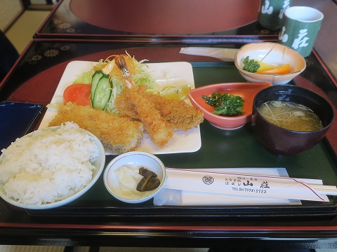 今日はK2Yの千葉県内ツーリング。 昼に鴨川市の内陸にある、和食処 山荘までやってきました。 海鮮ミックスフライ定食をいただきました。 |