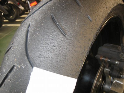 CBR600RRのメイテナンスは基本的に自分でやるようにしています。 (専用の工具が必要だったりするときはK2Yにご厄介になりますが) 今回はタイヤ交換。 頻繁にサーキット走行をするようになり、2〜3箇月に1回位はタイヤ交換をするようになりました。 ところが、毎回交換の手順を忘れてしまいます。 で、忘れないように今回はタイヤ交換の手順のレポを作成しました。 まさに自分のための備忘録です。(笑) 早速始めますが、後から写真でも分かり易い様に、タイヤの右側のバルブがある位置にガムテープを貼ってみました。 |