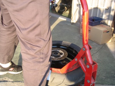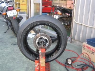 17:37 車体に装着 バランス取りが終わったら、タイヤをバイクに装着し、チェーンの張り具合の確認をして、リヤブレーキを踏んでパッドを密着させブレーキが効くのを確認して終わりです。 ついでに、チェーンの掃除と給油をしました。 この一連の作業、写真を撮りながらですが、時間かけすぎぃ。 昔、金の無い学生のときなどは、バイク屋さんに工具を借りて、みんな自分でタイヤ交換をしていました。 プロがやると簡単そうにタイヤ交換をしてしまうのですが、素人が自分でやるとこれがなかなか大変。 始めてやる素人がタイヤと格闘しながら交換しているのを端から見ると結構笑えたものです。 今は自分でやろうとする若い人もほとんど見なくなりました。 |