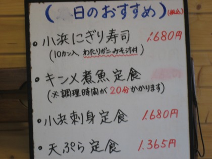 そして、注文は( 日のおすすめ)トップの”・小浜にぎり寿司”。