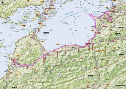 今日の道程 今日は出発も遅かったし、金比羅さんに行ったこともあり、移動距離は少なめの1日でした。 ※ 写真をクリックすると大版が開きます |