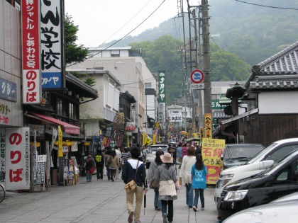 10:36 参道を行く 参道に近い駐車場にバイクを駐めます。 さすがにに金比羅さん周辺には、バイクと言えども無料で駐めておける様なところはなく、四輪用の駐車場の空いているスペースに¥300払って駐車しました。 それでは、金比羅さんに向けて、Go! |