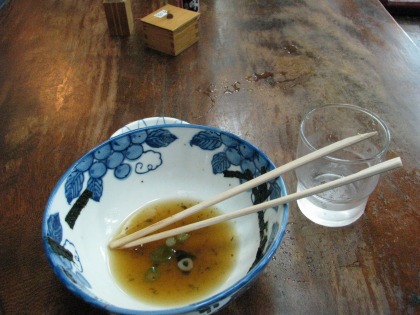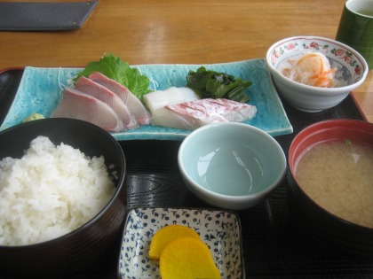 14:52 刺身定食 お品書きに、”海鮮丼”はあったのですが、すでにSOLD OUT、売り切れ。 『じゃあ、いいです』と言って、店を出る勇気を自分は持ち合わせていません。 (それは”勇気”じゃなくて”忍耐力”だろう!) と言うことで、注文は刺身定食。 しっかり、いただきます。 ネタは鯛とイカと、あと良く分かりません。の3種類。 イカは普通。 鯛はやっぱり美味しい。関東よりも扱いを大事にしているように感じました。 あと、四国はお刺身は普通の醤油と別にさしみ醤油を置いているところが多いですね。(昨晩の居酒屋にも2種類の醤油が置いてありました) 関東の人はこの、ちょっと甘めのさしみ醤油を嫌がる人が多いですが、自分は嫌いではありません。 マグロの中トロなんかに付けると、味がしつっこくなりすぎると思いますが、鯛を代表とする淡泊な白身の魚には合っているかなぁ。って思います。 やっぱりこれも、文化の一つですね。 |