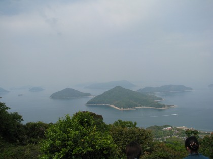 13:56 紫雲出山(しうんでやま)から 県道232号線の終点、紫雲出山までやってきました。 紫雲出山は瀬戸内海国立公園内に位置する荘内半島にあります。 紫雲出山自体は標高352mと決して標高の高い山ではありませんが、海から急激に立ち上がっているため、その眺めは最高です。と書きたいところですが、残念ながら春霞で遠望が利かず写真写りはイマイチです。 それでも、眼下に見える島々は瀬戸内海ならではの光景ですね。 |