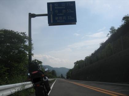 16:47 国道11号線ふたたび 県道13号線で終点の西条市まで進むと国道196号線にぶつかります。 時間的に余裕があれば、北上して今治方面に進み、しまなみ街道を眺めるなんてルートもありますが、なんだかんだで、いい時間になってしまいました。 そのため、国道196号線は左折して南下し、国道11号線に入り西走して松山・道後温泉を目指すことにしました。 バイクは国道11号線に入り、桜で有名らしい”桜三里”の辺りまできました。 この区間は信号もなく、四輪車の後ろについて、”のべーっ”と走る国道でした。 交通量も少ない早朝とかであれば、面白いかな? |