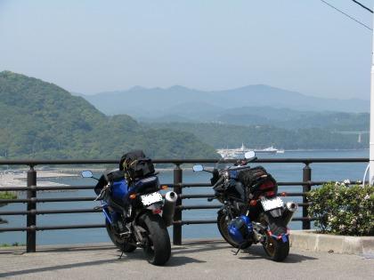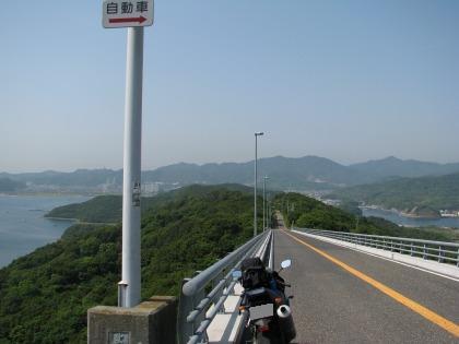 9:27 鳴門大橋 2日目と同じ道順で、鳴門大橋が見えるところまでやってきました。 この前ここに来たのが5月の2日で今日は9日、四国ツーリングもあっという間の1週間でした。 今日は土曜日、ETC休日特別割引の日です。 |