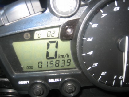 16:42 菊川 御前崎ICで 菊川 御前崎ICまでの距離看板で写真を撮る理由は、走行距離がちょうど3,000kmになったから! と、デジカメをメータに移動している間に100m走っちゃって、走行距離は3,000.1km。(惜しい) いずれにしても、このツーリング、3,000kmを越えました。 ちなみに、下の写真のスピードメータの100km/hの真ん中の”0”の形がちょっと変だけど、気にしないでね。 速度厳守の安全運転! |