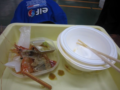 11:40 小綺麗に バイクを駐めて、市場の中に入って見ることにします。 中はなんとなく昔とレイアウトは変わっていないみたい。 入口入ってすぐの寿司屋さんとか、かすかに記憶があります。 市場の中を回ってみましたが、今は、掘り出し物なんてないみたいね。 カニはやっぱり、北海道でも高い。 まあ、昼食を食べるつもりで寄ったので、お決まりですが、”勝手丼”いっちゃいます まずは、ご飯(中盛り¥200)を買って。 市場内をグルグル回って、好みの海鮮を買って、載っけます。 |