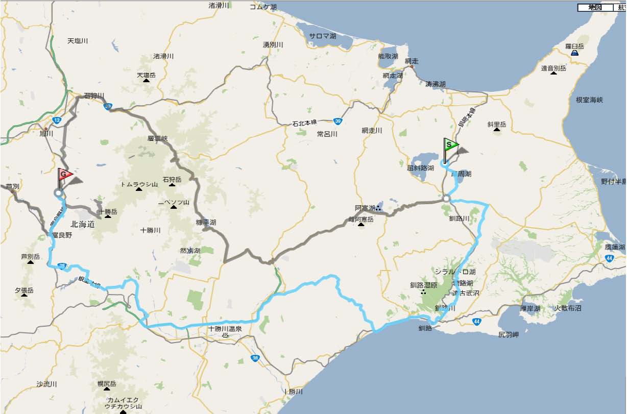 10:02 道間違えた! ホクレンでガソリンを給油した後、国道243号線で摩周の市街地を通過し、その後国道391号線に入り釧路に向かう予定ですが・・・・。 『あ〜、道間違えてる』 道路標識の行き先から釧路が無くなったので、おかしいと思ったら、途中から国道391号線に曲がらなきゃいけないのを曲がり損ねました。 (>_<) こうゆう時は、ナビの力を借りて、ルートを検索。 この先で、北海道道13号線に入れば、国道391号線に復帰できます。 |