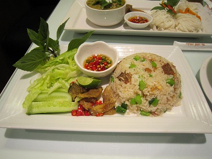 13:31 もう一品 もう一品。と言うか、主食はチャーハン。 干した魚の皮のチャーハン。 魚の皮は干物なので、ちょっと塩っぱいですが、良い味を出しています。 タイ米を使ったチャーハンはパラパラで美味しい。 向こうに見えるのは、嫁さんが頼んだグリーンカレー。 ご飯ではなく、センミーだと思うけど、米から作った麺で細麺タイプ。 嫁さんはそれプラス、タイ風焼きそばのパッタイ。 嫁さんも2品。 (結局、嫁さんは間食出来ず。 残りはお持ち帰り) ここのレストラン。 リトルキッチン(?)と言うだけあって、軽食で量が少ない。 ちゃんと食べようと思うと、2品は食べないとお腹いっぱいにならない。 |