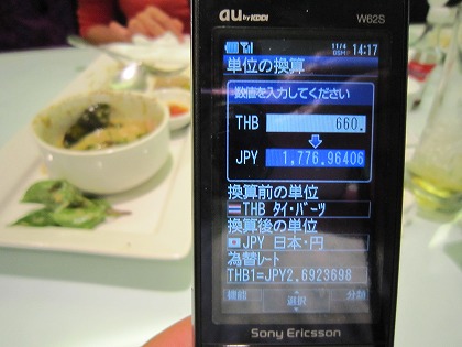 14:16 代金は デジカメの撮影時間を見たら、長居してますね。(笑) 合計は2人で660バーツ。(\1,800弱) 高い。タイにしては高い。 まあ、日本で言えば銀座の三越で食べているようなものですから。 外の屋台とかフードコートで食べれば、3分の1ですね。 |