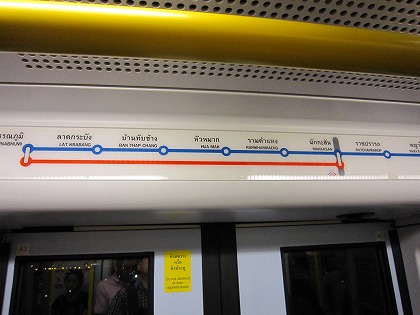 19:59 嫁さん宅を出発 写真、失敗だね。 (^_^;) 帰国の準備ができました。 8時前にタクシーを呼んで、嫁さん宅を出発します。 チェックインは離陸2時間前の20:40から。 バンコクからスワンナプーム空港までは、今年の夏に開通したエアポート・レール・リンクで行きます。 嫁さんが言うには『エアポートリンクは空港まで10分ぐらい。』(だって) エアポート・レール・リンクの駅までは、嫁さん宅から2kmくらいと至近です。 チェックイン開始まで、残り41分。 |