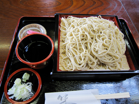13:38 ざるそば 注文はシンプルに”ざるそば”を大盛りで。(¥600+大盛り¥200) しばらくして、ざるそばが運ばれてきました。 そばはやや細めに打たれたものです。 蕎麦の角が立って、丁寧に打たれています。 汁は・・・。(忘れてしもうた。(T-T) |
