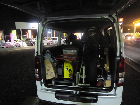 18:48 積み込み完了 交換したタイヤの積み込みも完了。 いつでも、夕飯食べに行けますよ!(笑) |