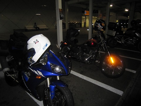 4:18 海老名サービスエリア 横浜町田インターで東名に上がり、とりあえず一つ目にあるサービスエリア、海老名SAにやってきました。 今日の宿は広島に予約してあるので、夕方までに広島に着けばOKなので、あとはゆとりをもって。 駐輪場にバイクを駐めると、どこかで見た記憶のあるオレンジ色のタンクのハレーが駐まっています。 |