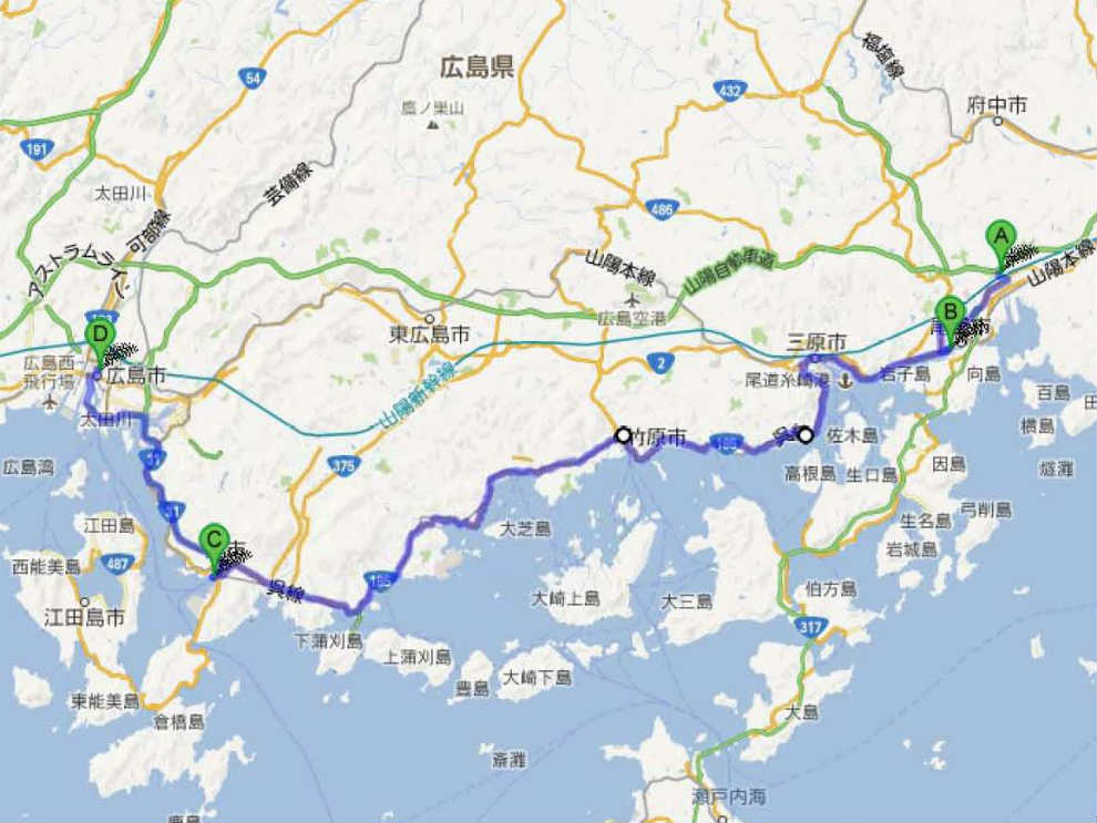 国道2号線を15kmほど走って、交通量の多さに少々辟易としたこともあり、三原市からは海沿いの国道185号線を走ることにします。