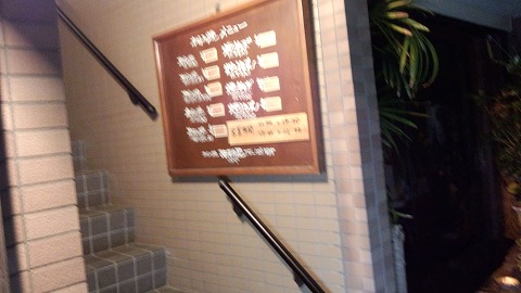 20:24 お好み焼き お店の看板が光ってダメっぽそうだったので、店の入り口にあるお品書きを撮影しなおしてみました。 でも、これも暗くて、ぶれちゃってダメだね。 お店は、通りから薄暗い路地に入ったところにあるビルの2階。 営業時間は9時までですが、お好み焼き屋で長っ尻はないから、大丈夫でしょう。 さっそく、階段を登って店内に入ってみることにします。 |