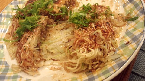 20:43 ネギを載せる 一口食べた後、一緒にでてきたネギを載せていただきます。 青ネギを載せるとさっぱり感が出て、いけますね。 そして、やっぱり美味いのがキャベツ。 キャベツは、ざく切りより細かく、千切りよりも厚く切られており、生地の間で蒸されて軟らかくなりふんわりして甘みもでておいしい。 なんかこのキャベツを食べていたら、食感がホットドックに挟まれて少し暖かくなったザワークラウトを思い出しました。 |