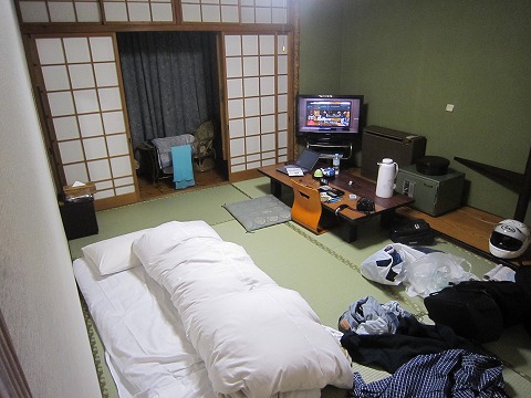 でも、この宿には有線のLANはなし、インターネットでルートを確認することが出来ず、ツーリングマップルでルートを検討することになりました。