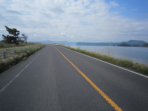 9:03 中海(なかうみ) ホテルのある松江を出て、国道431号線を北東に進み、右手に中海を見ながら北岸を走ります。 中海は、島根県と鳥取県に位置し、日本で5番目に大きな湖です。 一般的には、宍道湖の方が有名ですが、宍道湖の大きさは7番目で、この中海よりも面積は小さいです。 ちなみに、ここで勉強しておくと、日本一面積の大きな湖は言わずもがな琵琶湖。 2番目以降は、霞ヶ浦、サロマ湖、猪苗代湖、中海、屈斜路湖、宍道湖、支笏湖、洞爺湖で10番目は浜名湖です。 中海は斐伊川水系に属し、宍道湖から流入し、日本海の美保湾に注ぎます。 境港のある境水道と海とつながっており海水が流入するため汽水湖となっています。 |