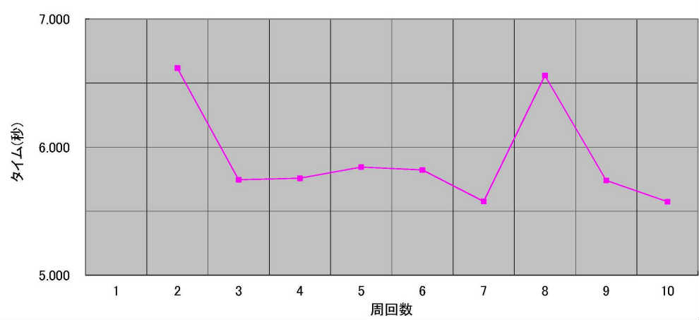 気持ち切り替えて行っているつもりでも、やっぱりどっかビビッてタイムは伸びず5秒台後半で周回。