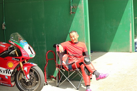 15:21〜15:42 ちょっとだけ休憩したつもりだったけど、小一時間休憩してたんだね。 今日の走行会は4時半まで、終盤です。 午前中から伏せる練習していましたが、ムリな体勢をしていたもので、首が痛くなったので、ムリに伏せるのはこの辺までにしておきます。 相変わらずミッションの調子がよろしくありません。 1速から2速へは無理をしないとシフトアップしない状態です。 ミッションの抜けは出たり、出なかったりするので、シフトアップのタイミングをずらしてみたりしてみますが、やっぱり出るときは出る。 ここでガソリンがなくなってきたので、ピットインします。 |