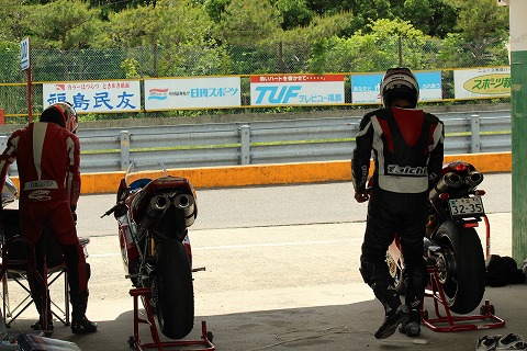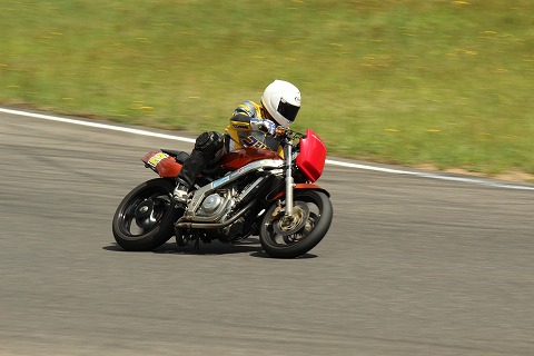 13:35 特訓中。 しばらくカメラを構えていると、やってきたエビナさん。 6月21日(日)の筑波TTにエントリーしているので、もっか特訓中! |