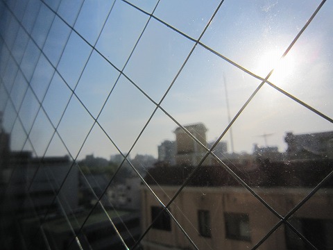 ホテルの飛散防止ワイヤの入った窓から外を見ると快晴、今日もツーリング日和です。