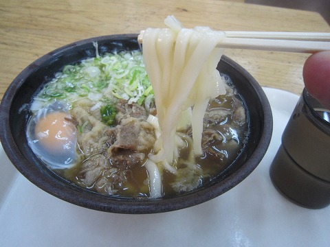 注文は、”肉うどん”に生タマゴを落として。(550円)