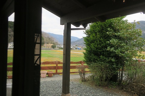 店の窓から田園風景を眺めながら、のんびりと食事をとることができます。