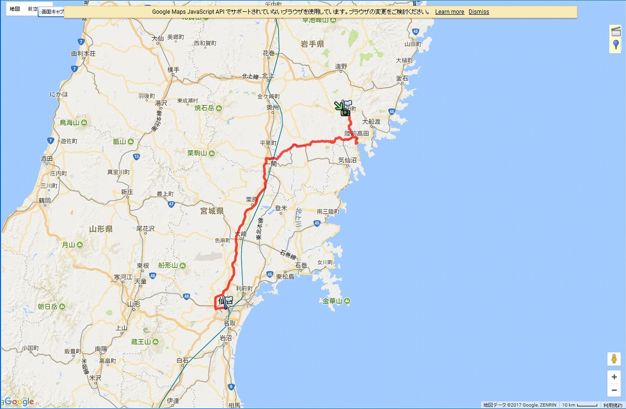 | 午後の道程:気仙郡住田町〜陸前高田〜一関〜仙台:180.4km | |