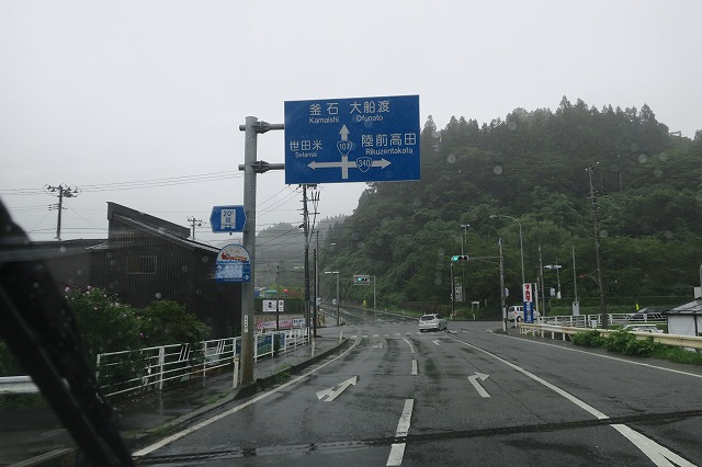 12:33 比較的短い重複区間 味噌屋麺太から東進すること2キロ半ほど、国道107号線との分岐点までやってきました。 と言うことは、国道107号線と国道340号線との重複区間は、比較的短くて4.5kmほど。 この交差点を右折して、国道340号線の単独路線に入り、陸前高田を目指します。 |
