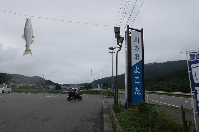 13:03 川の駅よこたで 国道107号との分岐の交差点から南下すること10km弱、道路脇に道の駅じゃなく”川の駅よこた”がありました。 昼食後の睡魔が襲ってきたので、駐車してちょっとだけ惰眠。 目が覚めたので、再び走り出します。 |