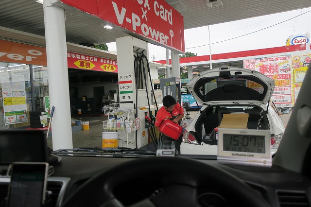 15:07 燃料を給油 県道19号線に入り西走を続け、一関の市街地にやってきました。 高速に上がる前にまずは燃料。 一関インター近くにあるshellのスタンドで給油します。 目の前のスタンドマンは何やってるんですかね? まずはお客さんが積んできた携行缶からクルマにガソリンを入れて、満タンにならなかった分スタンド給油機から給油。 その後に、給油機から携行缶にガソリンを給油。 って、時間かかるんですけど・・・。 他の列に並べばよかった。 外れたね。 |