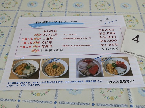 10:10 お目当てはうに丼 仏ヶ浦ドライブインに停まった理由は、うに丼。 2016年にぬいどう食堂を訪れたときは、台風の直後で漁に出られないためうにがありませんでした。 実は、昨日お昼を食べた後、ぬいどう食堂に問い合わせをしたのですが、 『お盆で、漁に出ていないので、うに丼はありません。』 との回答。 自分はうに丼が食べたいのだよ。 ダメ元で、仏ヶ浦ドライブインに来てみました。 ここで うに丼が食べられるかもしれなかったので、朝食を少しに抑えたのは、ナイショの話。(笑) 早速、入店。 |
