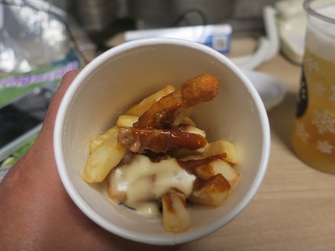 19:15 ラキポテ サイドメニューのラキポテ。 語呂が悪いね。 言いにくい。 小言が多いのは、もうお腹一杯だからか。 たまにマック(マクドナルド)に行くと、たいがいダブルチーズバーガーに他もう一個、それにポテトとドリンクを頼みます。 そのつもりで頼んだラキポテ、だけど正直お腹一杯。 フライドポテトにミートソース&チーズをかけた、この料理はジャンク感満載。 ビールに合います。 美味しいけれど、50歳半ばの自分には正直しんどいです。(笑) しかし、これでチャイニーズ チキン バーガーが350円、ラッキーチーズ バーガーが390円、そしてこのラキポテが320円と1,000円をちょっと超えるけど、この胃袋にくる満足感は値段以上。 |