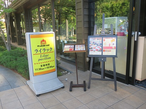 16:25 ライラックへ と言うことで、総合案内で予約票らしきものをもらい、園内を歩いて訪れたのが、5つあるホールの一つ”ライラック”。 さっそく入店するなり。 |