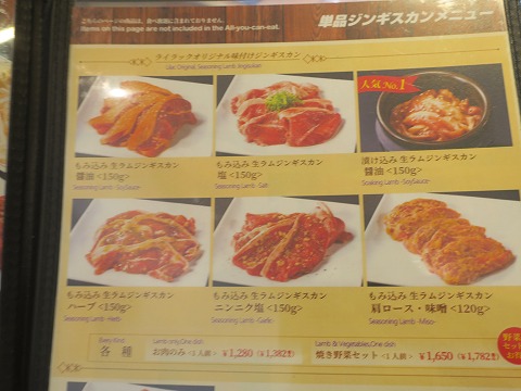 16:30 注文は さっそく注文です。 なんせ、6時半までの2時間しか時間がありませんから。 (+_+) 注文は~。 オーソドックスな”醤油”が正統派なんでしょうけど・・・。 右上の人気No1の”漬け込み生ラム”が。 と言うことで、人気No1を注文。 注:オーソドックスの和訳は”正統派”。 英語と日本語で同じことを言ってます。(汗) |