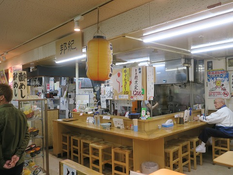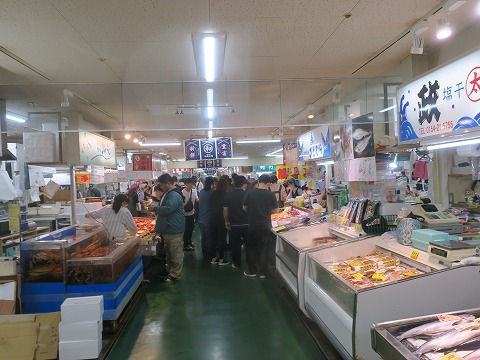 12:52 出発します。 お腹も膨れたので、出発することにします。 他の勝手丼のお刺身とかの魚介類を売っているお店は混んでますが、ここは空いてます。(笑) |