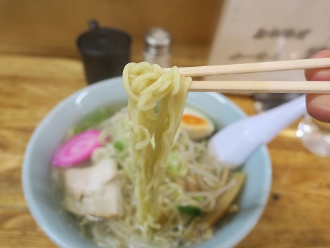 12:39 旨い それでは、「いただきます。」 麺はちょっと縮れた中細麺。 スープが美味しい。 正解でしたね。 鶏の出汁と野菜の旨味が合わさって、イイ具合です。 雨で冷えた体も温まります。 そんなことよりなにより、昨日の昼の日本海食堂で隣でおじいさんが食べていた塩ラーメンが美味しそうで、昨日からずーっと塩ラーメン食べたかったんですよ。(笑) やっぱり、市場で生き残っている食堂は旨いもんだすよね。 食べログとかの評価をみると低いけど、あれは外の人の評価だから。 |