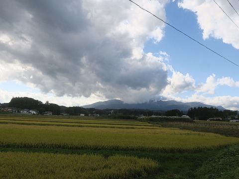 13:47 サーキットに戻る 戒石茶屋を出て、サーキットに戻る福島県道354号安達太良山線(あだたらやません)を西走します。 安達太良山の方から雲がにょきにょき流れてきてます。 噴火している訳じゃないけど、この季節としては珍しい雲ですね。 夏空の様。 |