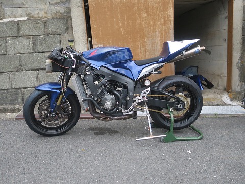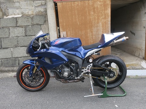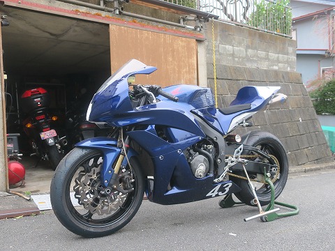 15:46 走行前の整備 一般道は走行できないサーキット走行専用のCBR600RR。 明日は今シーズン初の筑波サーキットの練習走行の予約をしてあるので、走行準備をします。 ガレージからCBRを引っ張り出して、まずはタイヤを交換。 去年の10月にエビスサーキットの走行会以降、サーキットを走ってません。 リヤは PERELLIの現行のタイヤを履いていますが、フロント タイヤは在庫処分でMETZELER の旧型のタイヤを履いたままです。 まずは、フロント タイヤの交換から。 |
