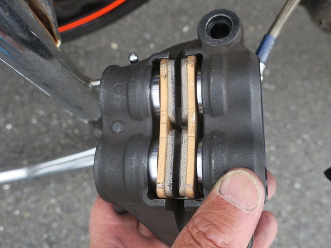 16:01 ブレーキパッドを確認 タイヤを外したタイミングでブレーキ パッドを確認。 買った時は HRC製のブレーキ パッドが着いていたんですが、エビスの走行会の前に無くなっちゃいました。 ので、在庫のモリワキ製のパッドを着けてます。 このパッド、ノーマルよりも効きが良くて、持ちもいい。 その上、価格も1セットで7,000円ほどとリーズナブルでした。 (CBRの場合、2セット必要なので、14,000円ほど) で、このパッド、もう売ってないんです。 仕様が無いので、HRC製のパッドを注文したら、2セットで30,000円超でした。 約、倍! (゚o゚;) |