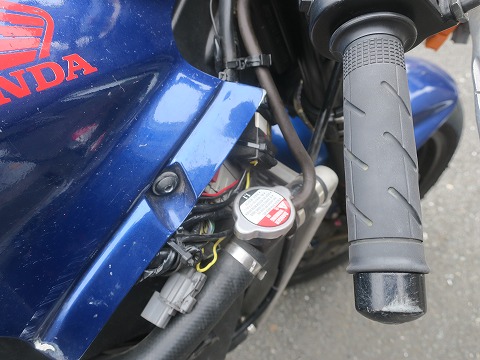 16:30 入れました ラジエータ キャップぎりぎりまで、入れました。 下のホースとかを指で押してムニュムニュして、エアーが抜ける様に。 これでも、エアーは抜けません。 ので、一旦暖機して、冷えたら確認して補充するんですけど。 いくらサーキットの騒音規制を通っているとは言え、住宅街の真ん中でST600のエンジンをかけたら、ぜったい近所の人に通報されます。 昼間でもね。 (笑) |