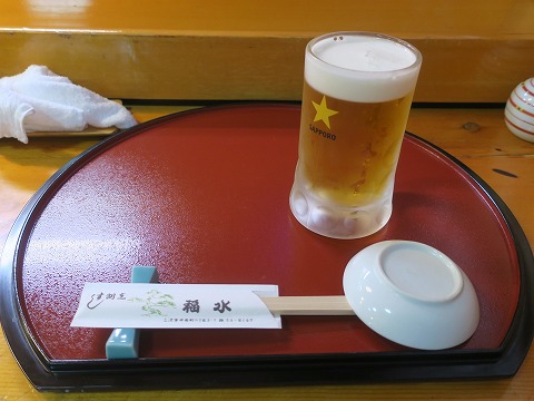 18:36 琥珀色の旨いやつ 店内に入り、カウンター席へ。 やっぱり新型コロナウィルス感染症の影響ですね。 時間は早かったけど、カウンターには自分一人。 店の奥の座敷にもお客さんは入ってなさそう。 (後から、二人組がきましたが) とりあえず生ビールを注文。 それでは、「いただきます。」 |