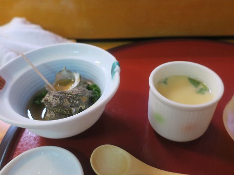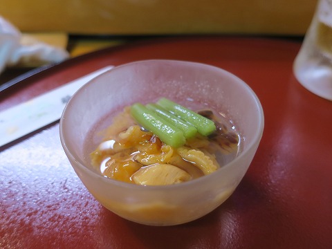 18:37 お通しは お通しは、定番の冷たい茶碗蒸しとツブ貝だったかな。 冷たい茶碗蒸しは、ツルッと入っていって夏のこの時期には清涼感があって美味しいです。 ツブ貝も、冷やしてあって夏場のつまみとしていいですね。 |