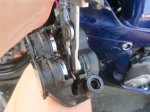 16:30 それほど? さて、キャリパーが外れたら、汚れ具合を確認。 CBRはサーキットを走るので、そこそこの頻度でパッド交換しているので、街乗りバイクほどは汚れてません? |