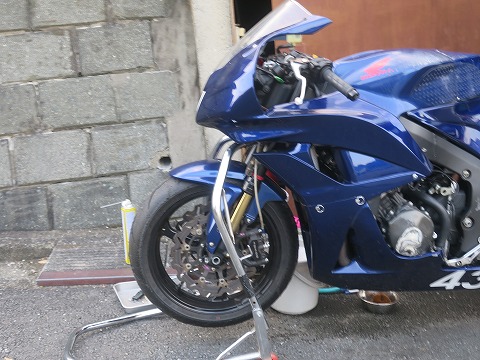 16:17 今年のお盆は 世間では、今日はお盆休みの最終日。 俗世間から解脱している自分は、まだまだ休みが続きますが。 (世間では、”休み”とは言わない。 ”失職中”である)(笑) 今日も暑いので、水仕事がよろしいので、ブレーキのクリーニングをします。 今日はCBR600RRの方、昨日やったのはGSX-R。 GSX-Rだけ可愛がると、CBRが焼きもちを焼くから? |