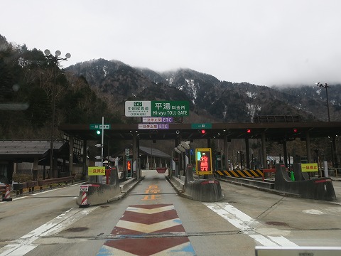9:58 奥飛騨温泉郷まで 平湯から国道471号線で北上すること10km余り、奥飛騨温泉郷までやってきました。 フロントグラスに雨粒が落ちてきましたが、雪にはなりませんでした。 |
